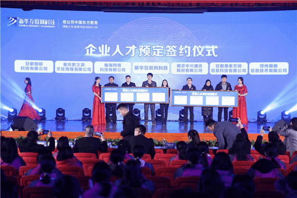 "六穩(wěn)六保"工作"都將就業(yè)都擺在首位,解決好學(xué)生的就業(yè)是發(fā)展職業(yè)教育的重中之重。讓學(xué)生好就業(yè)、就好業(yè)是一所優(yōu)秀的職業(yè)教育院校存在與發(fā)展的根本,而校企合作模式是新形勢(shì)下企業(yè)和學(xué)校共同的必然選擇,這是一條學(xué)校、學(xué)生、企業(yè)三方“共贏”的道路,具有可持續(xù)發(fā)展性的人才培養(yǎng)策略。本次活動(dòng)現(xiàn)場(chǎng),新華互聯(lián)網(wǎng)科技與12家企業(yè)代表簽約人才預(yù)定協(xié)議。校企雙方對(duì)進(jìn)一步創(chuàng)新合作模式,推動(dòng)校企合作發(fā)展進(jìn)入“快車道”達(dá)成共識(shí)。校企雙方從簽訂人才共建協(xié)議、總監(jiān)進(jìn)校授課、人才定向培養(yǎng)、帶薪頂崗實(shí)習(xí)、畢業(yè)直通名企……全面打通學(xué)生的綠色就業(yè)通道,保障學(xué)生畢業(yè)有工作,企業(yè)發(fā)展有人才。