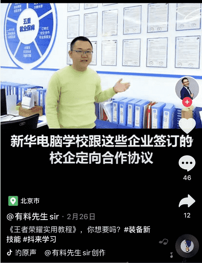 最近抖音達(dá)人“有料先生”走近了一家全國為數(shù)不多的開設(shè)電子競(jìng)技專業(yè)的“新華電腦學(xué)校”,一起探秘學(xué)習(xí)電競(jìng)背后的秘密。